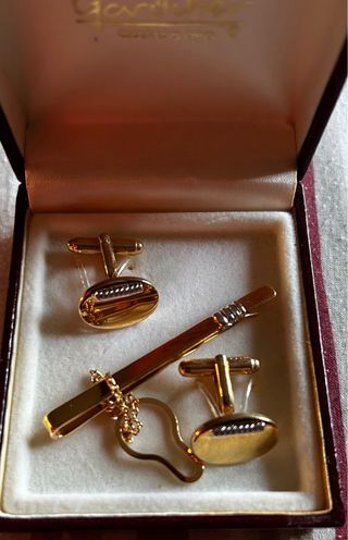 Conjunto de gemelos y pasador de corbata vintage. Díseño clasico y en buen estado.