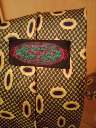 Elegante corbata de la marca Lamberto, con un diseño único.Como nueva ,casi sin uso . - Hecha a mano. - Patrón de rombos y óvalos .