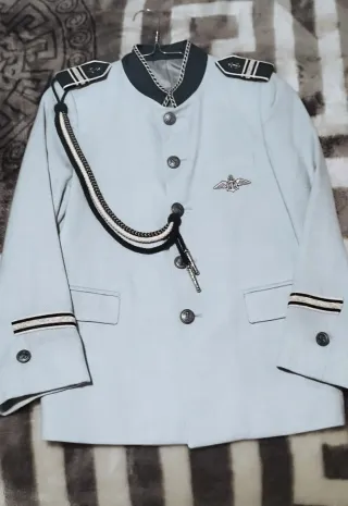 Traje de almirante para comunión, incluye corbata azul, pantalón y cinturón - Chaqueta blanca con detalles. - Corbata azul marino. - Pantalón a juego.