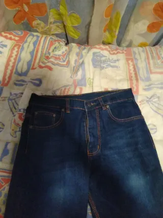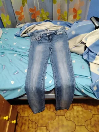 Pantalón vaquero de corte ajustado, ideal para el día a día. - Diseño de cinco bolsillos. - Cierre con cremallera y botón. - Tiro alto.