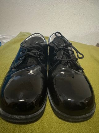 Zapatos de charol negros, perfectos para comuniones. - Cierre con cordones. - Diseño clásico y elegante.