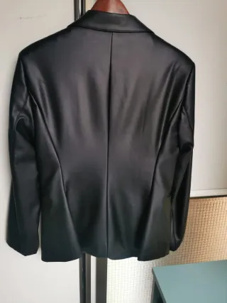 Chaqueta tipo blazer de polipiel con un diseño elegante. - Cierre de un botón. - Bolsillos frontales. - Cuello solapa.