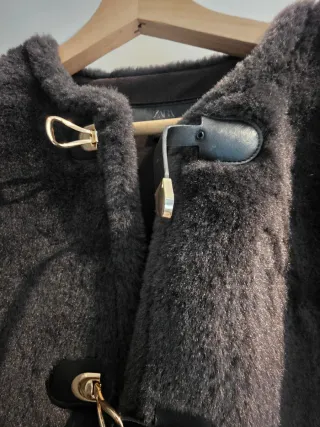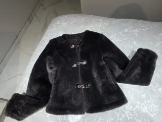 Elegante chaquetón de pelo sintético.Está impecable .El cierre de arriba no cierra bien por lo demàs super nuevo. - Cierre con botones. - Diseño corto y moderno. - Tacto muy suave.