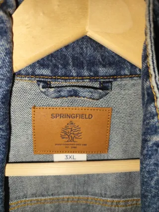 Chaqueta vaquera de la marca Springfield. - Diseño clásico. - Etiqueta de cuero con el logo de la marca y el año de fundación. - Talla XXXL.