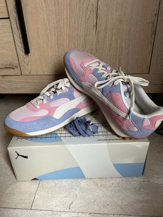 Zapatillas Puma Easy Rider en talla 41, a estrenar con caja. Combinan tonos rosas y azules con detalles blancos y suela de goma. - Cierre con cordones. - Diseño deportivo. - Incluye cordones adicionales.