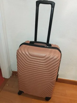 Maleta de viaje con un diseño moderno y elegante. - Material resistente. - Ruedas para fácil transporte. - Asa extensible. Medidas 65cm alta 45 cm ancho 25 cm profundidad