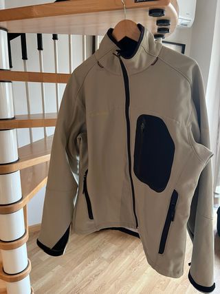 Chaqueta Columbia de montaña o esquí con forro polar interior. Perfecta para actividades al aire libre. - Color beige y negro. - Cierre de cremallera frontal. - Bolsillos con cremallera.