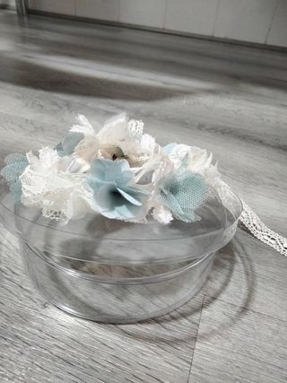 Corona de comunión flores azul y crema