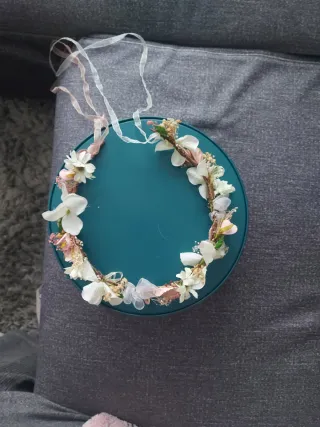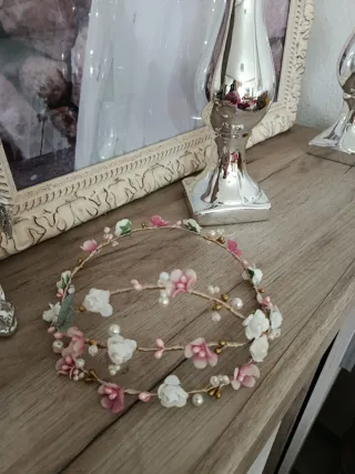 Corona para niña, muy elegante, ideal para comuniones.Costó 140€ , lo vendo por 70€. - Adornada con flores y detalles. - Cinta para atar. -Tamaño perfecto y elegante.