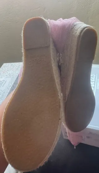 Zapatos Merceditas Esparteñas de comunión atadas al tobillo. Completamente nuevas solo usadas para la ceremonia comunión. Son de este año del corte inglés.Número 35. Y regalo bailarinas plateadas. 25€ y si quieren corona comunión a juego está intacta.