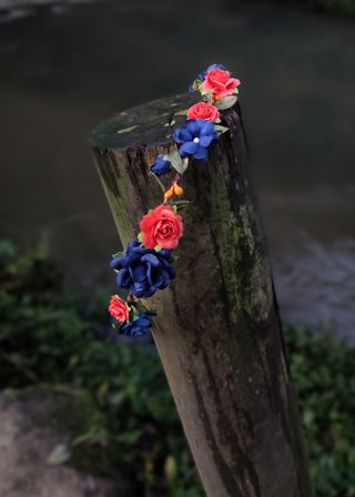 Hecha a mano por encargo con flores secas. Usada para sesión de comunión