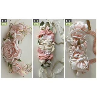 Precioso conjunto de dos coronas de flores, ideales para comunión o eventos especiales. Elaboradas con delicadas flores preservadas y tul. - Dos coronas incluidas en el set. - Diseño floral con tonos rosas y blancos. - Adornadas con cintas y pequeños detalles colgantes.