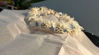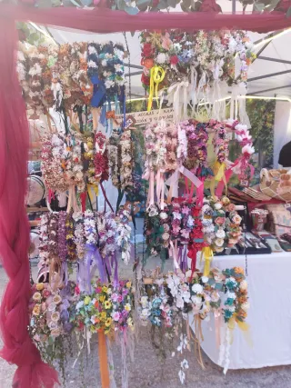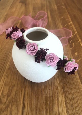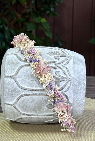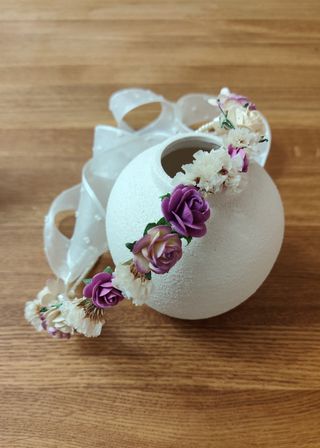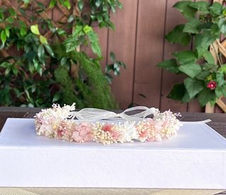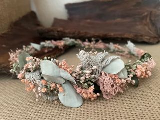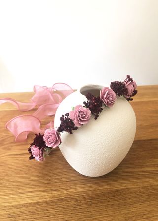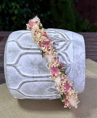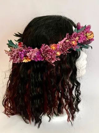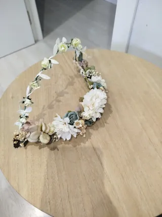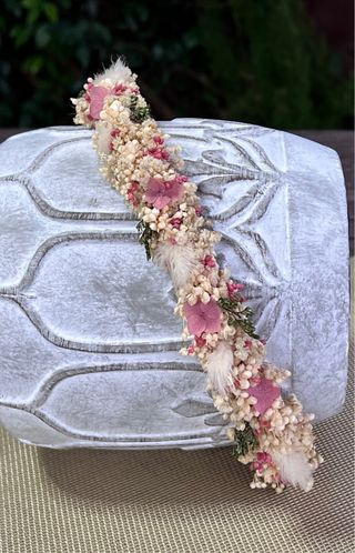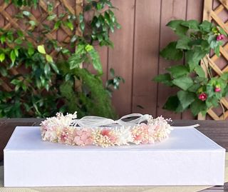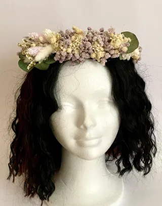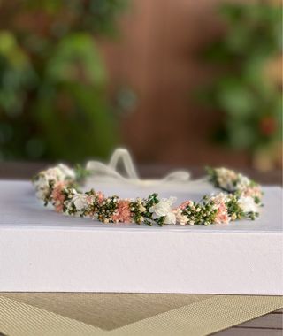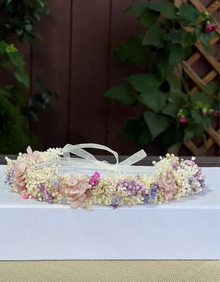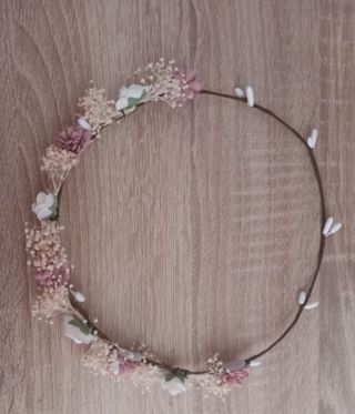 Corona de flores preservadas, ideal para comuniones. Un accesorio único hecho a mano. - Flores secas y preservadas. - Diseño artesanal.