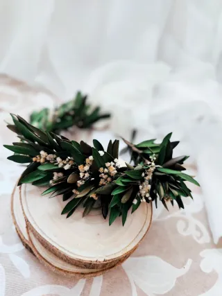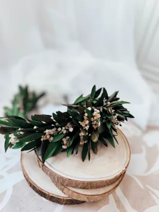 Corona de flores y hojas preservadas, ideal para adornar. - Flores pequeñas blancas. - Hojas verdes naturales. ✨ Corona vintage hecha a mano con flores preservadas ✨ Delicada corona artesanal elaborada con olivo preservado y paniculata, perfecta para dar un toque natural, romántico y elegante. Cada pieza está hecha con mimo, cuidando cada detalle para crear un complemento único y atemporal. Ideal para arras, ceremonias, comuniones o sesiones de fotos, especialmente pensada para niñas que quieran lucir un estilo dulce y natural en un día tan especial. Al estar hecha con flores preservadas, mantiene su belleza durante mucho tiempo