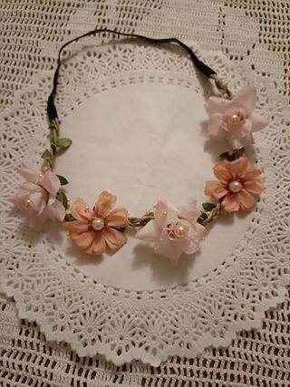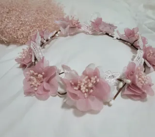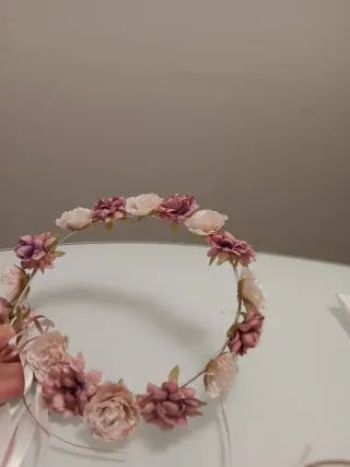 Preciosa corona floral para comunión, sin usar. Ideal para un evento especial. - Diseño delicado y elegante. - Flores artificiales de tonos rosas y blancos. - Perfecta para una primera comunión.