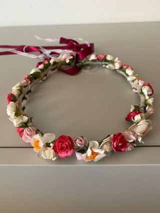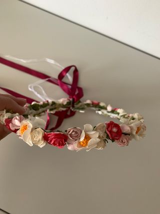 Corona de flores niña con varios colores para eventos; comuniones, bodas, niña de arras... combina con rosa, salmón, beis, blanco... Nueva. No se ha usado. No hago envíos.