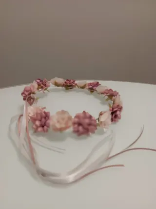 vendo corona de flores en tonos rosas nueva a estrenar ideal para primera comunión, niñas de las flores o cualquier ocasión.