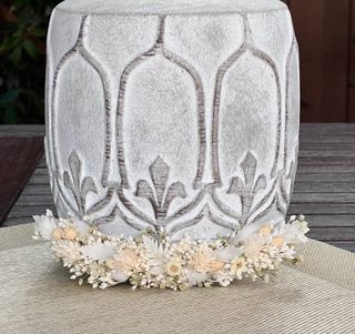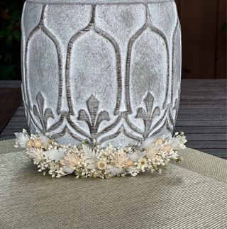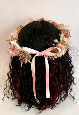 Corona de flores preservadas, ideal para comuniones. Un accesorio único hecho a mano. - Flores secas y preservadas. - Diseño artesanal.