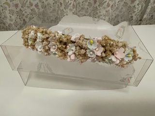 corona comunion niña beige y celeste, preciosa, utilizada solo un dia. parte de las flores son secas naturales, la corona es adaptable. hecha a mano dn alicante