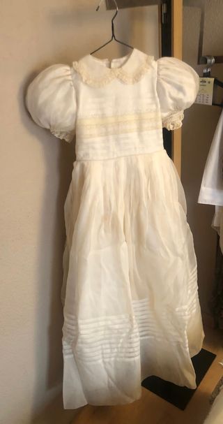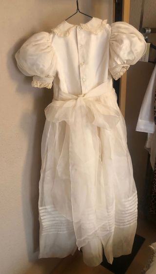vestido de comunión en organza hecho a medida para 9 años. Incluye chaqueta ,corona y zapatos. Llevado una sola vez escucho ofertas.