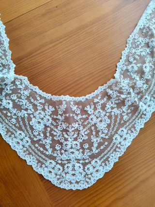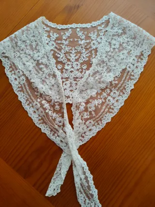 Peinador / pico de fallera con un diseño delicado y elegante. Ideal para complementar tú corpiño regional de manga larga. - Encaje blanco intrincado. - Borde festoneado.