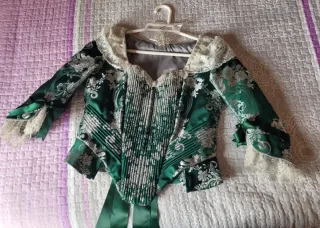Traje de fallera talla 36. Lleva dos corpiños, 1 manga larga y otro del siglo. Zapatos talla 38
