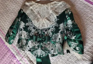 Precioso vestido de fallera a estrenar, con un diseño muy fino. Manteletas espectaculares de batista. Talla de zapatos 37. Puedo pasar alguna foto más por privado, aqui deja máx. 10 fotos. Precio negociable, ofertas serias, por favor. - Color verde esmeralda con bordados plateados. - Delicada puntilla. - Mangas adornadas con lazo y su encaje. Regalo cancan. MEDIDAS: CORPIÑO Pecho 48cm Sisa 20cm Largo 50cm FALDA Cintura ajuste mín. 40 diámetro (80cm contorno entero) lleva 3 corchetes para ajustar más ancho. Largo 104cm (8 más para sacar).