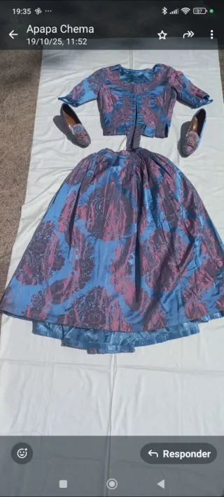Traje de fallera con dos corpiños y además incluye un zapato de fallera con número 37 y una espardeña fallera con número 36. Mido 1,60 cm. Cualquier duda consultarme. ¡Gracias! Se puede probar