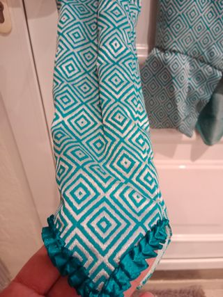 Traje de fallera niña, tela Vives y Mari. Para niña de 1 a 5 años aproximadamente. Tengo 2 corpiños de diferentes tamaños y dos pares de espardeñas talla 22/23.