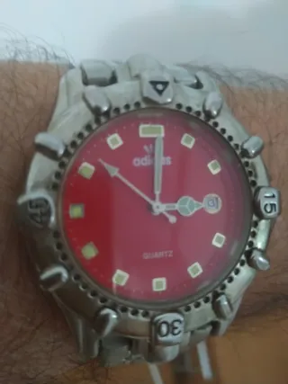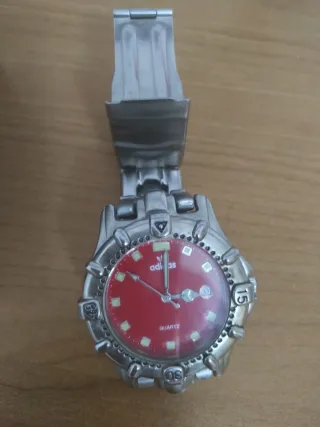 Reloj de la marca Adidas en color rojo. Es necesario ponerle una pila nueva para su funcionamiento. - Correa de silicona. - Esfera con detalles deportivos.