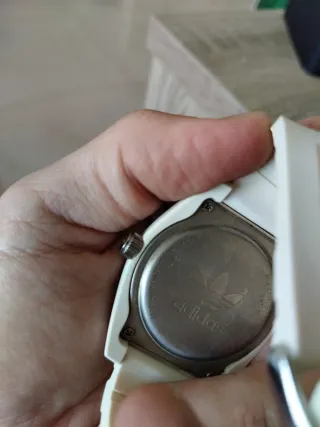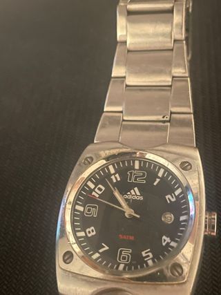 Reloj Adidas de pulsera con correa de acero y esfera blanca. - Bisel giratorio negro. - Indicador de fecha. - Resistencia al agua 10 ATM. - pila recién cambiada.