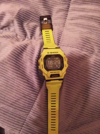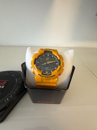 Reloj Casio G-Shock en llamativo color amarillo. - Diseño robusto y deportivo. - Correa de resina. - Esfera con detalles en negro y amarillo. Prácticamente nuevo. Sin rozaduras