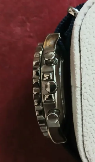 Reloj deportivo con un diseño llamativo. La correa está rota pero se puede cambiar. - Correa con detalles de puntos. - Bisel con marcadores.