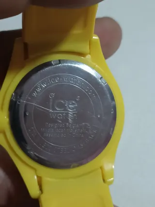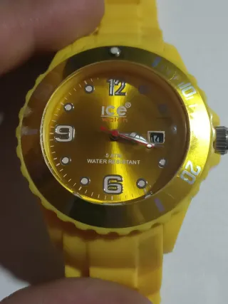 Reloj de la marca Ice Watch con un llamativo diseño. - Esfera en tono dorado. - Correa de silicona en color amarillo. - Bisel con detalles en dorado y azul.