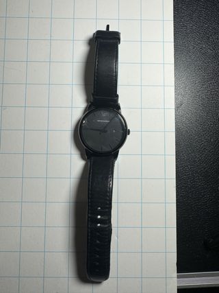 Reloj Armani con correa de cuero negra, y esfera, también lleva plateado, prácticamente nuevo