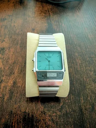 Reloj Casio con diseño clásico y moderno. - Esfera de color azul verdoso. - Correa de metal plateada. - Resistente al agua.