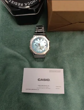 Reloj Casio G-Shock con correa de acero y esfera azul marino. - Envio rápido y seguro - Diseño moderno y resistente. - Acabado plateado en la caja. - El bluetooth no funciona - Nuevo con etiquetas