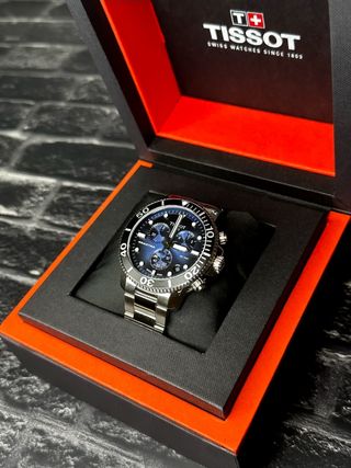 Reloj Tissot Seastar 1000 versión cronógrafo en perfecto estado no ha sido usado, con esfera azul. Reloj en garantía - Bisel giratorio unidireccional. - Correa de acero inoxidable. - Resistencia al agua de 30 bar.