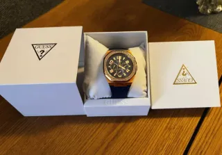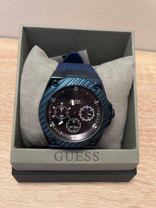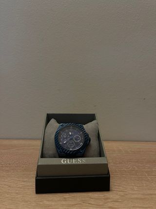 Elegante reloj de la marca Guess nuevo a estrenar con detalles en dorado y esfera azul,con factura para la garantía ,comprado en la web de Guess!me ha costado 236€.No se rebaja mas,no respondo a las ofertas,gracias - Diseño moderno y llamativo. - Correa de silicona color azul oscuro.