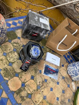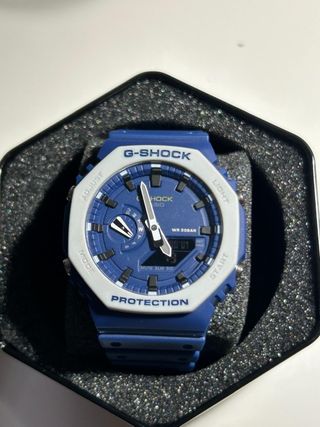 Reloj Casio G-Shock GA-2100 en color azul y negro. Incluye caja original y documentación. - Caja y bisel de resina. - Correa de resina. - Resistencia al agua 200m. - Cronómetro. - Temporizador. - Iluminador LED.