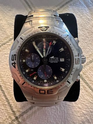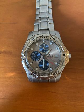 Reloj Lotus con cronógrafo y resistencia al agua de 100 metros. Un accesorio elegante y funcional. - Esfera azul. - Correa de eslabones plateada. - Bisel con marcadores. - Tres subesferas para funciones de cronógrafo. - Habría que cambiar pila - Water resistant