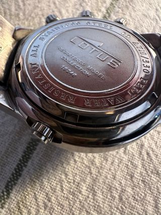 Reloj Lotus modelo 1050 sin estrenar, en su caja original. - Cadena de acero inoxidable. - Incluye una correa adicional de cuero azul. - Certificado de garantía internacional. - Quartz, resistente al agua 100 m. - En perfecto estado y revisado por un relojero (pila no incluída) - Esfera plateada con detalles dorados. - Calendario. - Bisel con marcadores. - Incluye certificado de garantía y sus piezas de repuesto.