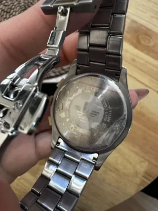 Reloj de pulsera con esfera azul reloj fonciona necita solo poner la corona en tija cuando cambiamos ahura la corona si abre de la tija - Correa de eslabones acero original. - Esfera azul en buen estado - Indicador de fecha. - material de caja y brazalete acero.