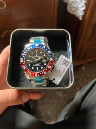 Reloj Squale Atmos Horizon Edición Limitada con función GMT. - Bisel bicolor azul y negro. - Esfera negra. - Correa de acero inoxidable. - Solo usado 2/3 veces - Con caja y documentos pero la caja no esta en buen estado