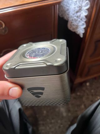 Reloj con un diseño moderno y llamativo. ⚠️Lo que se ve levantado es el plastico protector⚠️ - Correa de resina resistente. - Esfera con detalles en rojo y azul. - Caja metálica hexagonal incluida.
