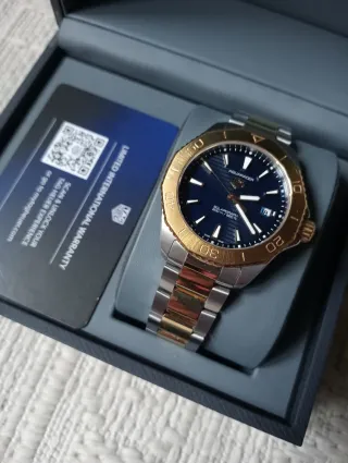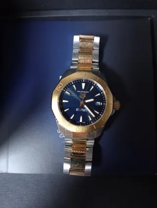 Reloj TAG Heuer Aquaracer con detalles en oro y esfera azul. Ha tenido pocos meses de uso.tiene la correa con algún rayon pequeño. La esfera está impecable - Combinación de acero inoxidable y oro. - Esfera de color azul. En la última foto está el codigo QR de este reloj.