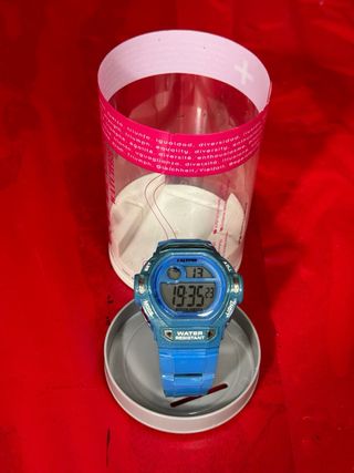 Reloj en buen estado. - Correa de silicona azul con el logo de la marca. - Esfera con detalles multicolor y tres subesferas. - Cierre de hebilla.