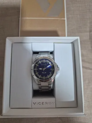 Elegante reloj Viceroy con una esfera azul y detalles plateados. - Diseño moderno y sofisticado. - Correa de metal. - Caja de presentación incluida.