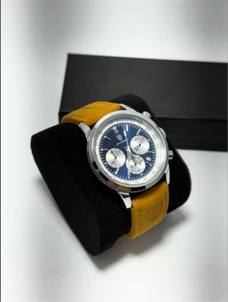 Elegante reloj Audi con diseño cronógrafo. Un accesorio exclusivo que combina tonos azules y negros. Comprado en audi collection shop. Esta practicamente sin usar - Correa de cuero negra con pespuntes blancos. - Esfera azul con detalles plateados. - Cierre de hebilla.