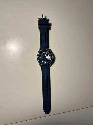 SE ADELANTA 1 hora/dia más o menos. Muy muy cuidado,prácticamente nuevo, sin arañazos y puesto muy poco, pero se adelanta y no me voy a marear en arreglarlo. *Correa original azul SIN ESTRENAR Reloj Seiko 5 Sports Military con correa de cuero marrón y detalles plateados. - Esfera oscura con números claros. - Correa de cuero con pespuntes. - Cierre de hebilla metálica.